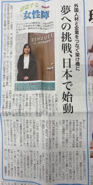 大学卒業後はタイの日系企業に就職し、日本人上司とタイ人スタッフの間に立って通訳業務を担当。それでも「いつか日本で働きたい」という夢を諦めず、在留資格「技術・人文知識・国際業務」を取得し、昨年12月に念願の来日を果たした。